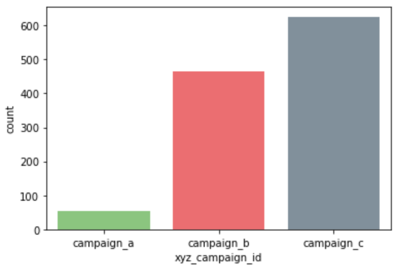 Now we'll replace their names with campaign_a, campaign_b and campaign_c for a better visualisation (which creates problem with integer values).